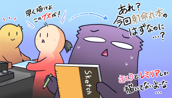 無事サークルスペースに戻れましたが、ごめん…、スケブ描く体力尽きたよ…。