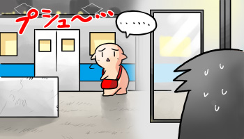 見事に電車に乗り遅れ、ホームで呆然としている起動さんの後姿でしたw